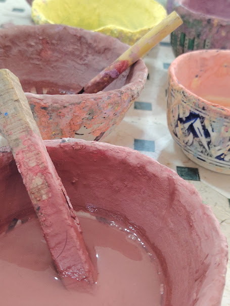 Un transport vient vous récupérer à proximité du Riad et vous amène dans le quartier des potiers. Après une visite explicative de cet artisanat, vous pratiquerez la mozaïque et la poterie. Vous peindrez ensuite votre oeuvre avec notamment une peinture violette qui se transformera à la cuisson en un bleu profond, caractéristique de Fès. Le transport vous ramène à proximité du Riad à la fin de cet atelier. À ne pas faire en fin de séjour, pour avoir le temps de récupérer les œuvres après cuisson + séchage (1 journée). Tarif : 450 Dhs / personne - compter une demi-journée